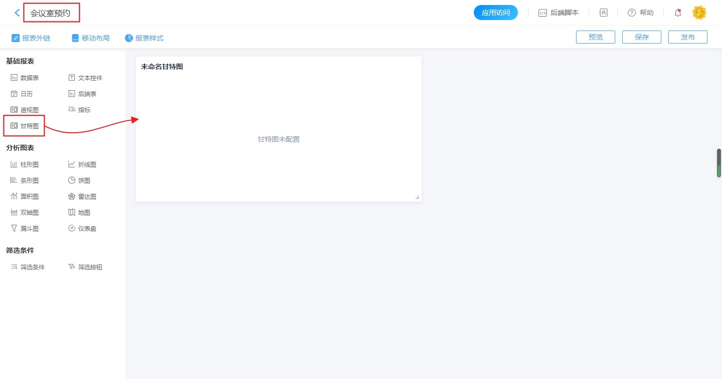 2、在分析报表中,添加甘特图。