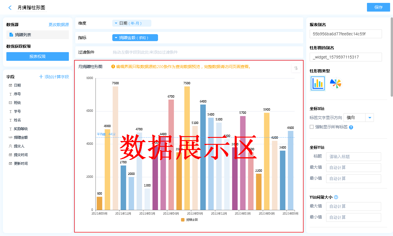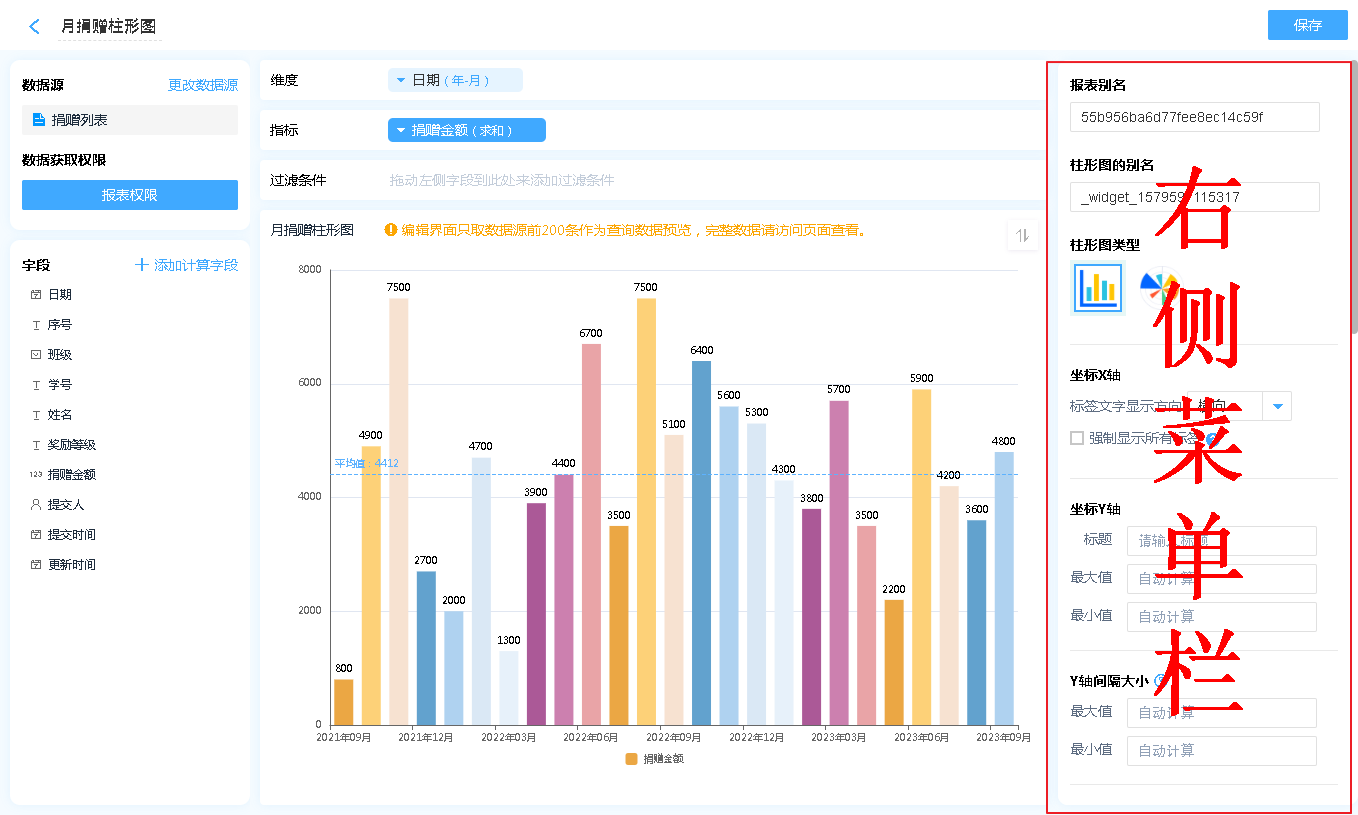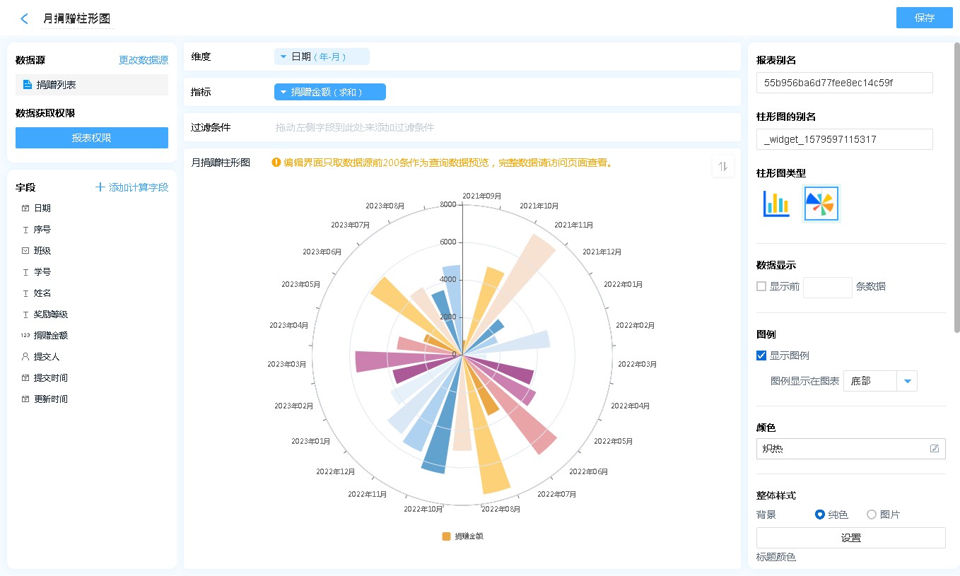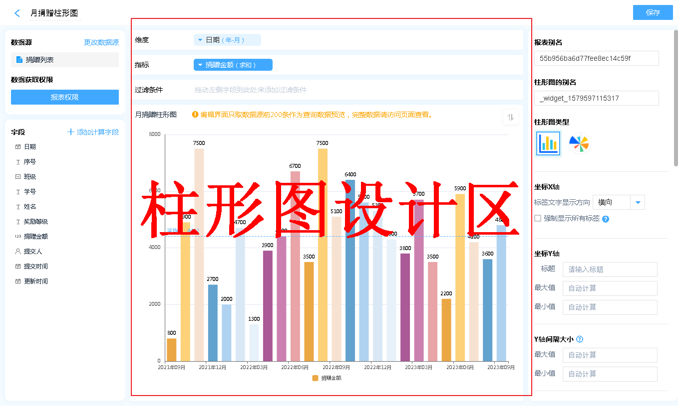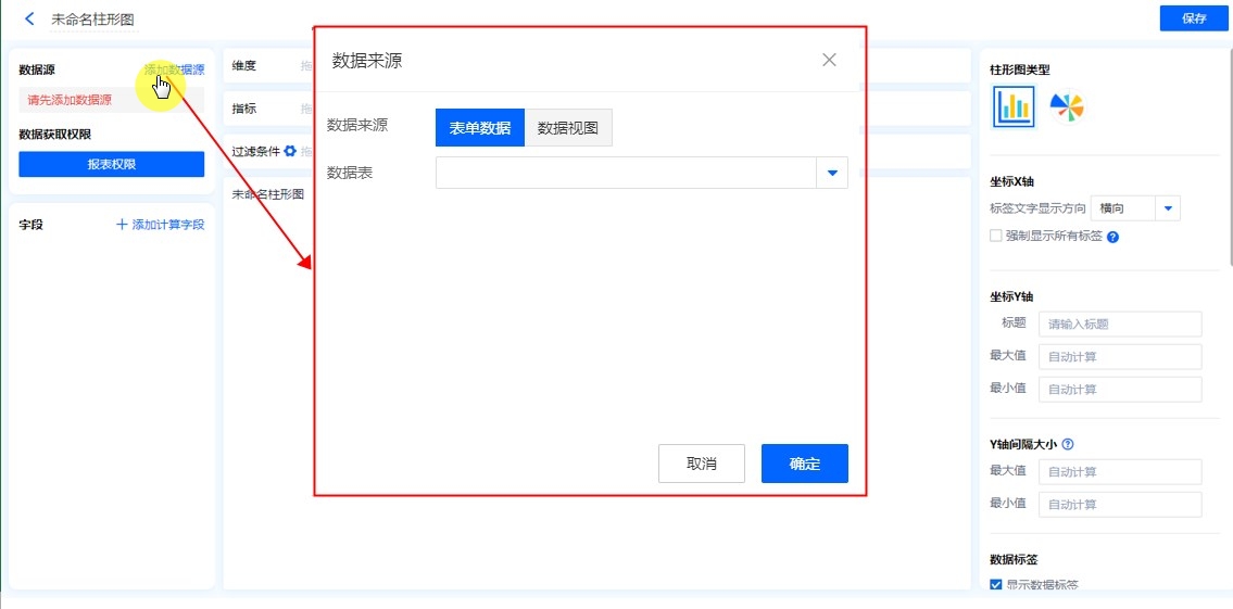 数据源就是指当前柱形图表的数据来源,可以是表单、数据视图。
