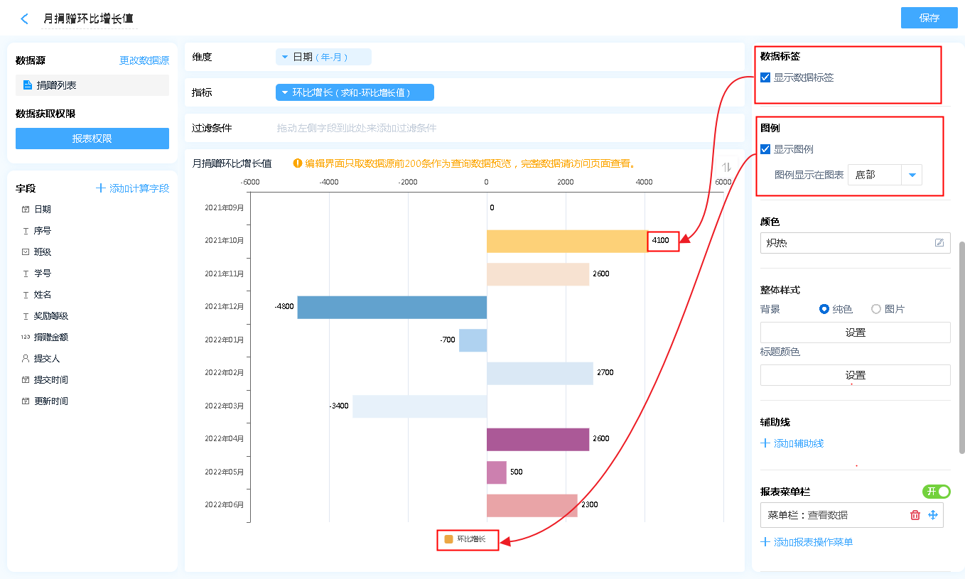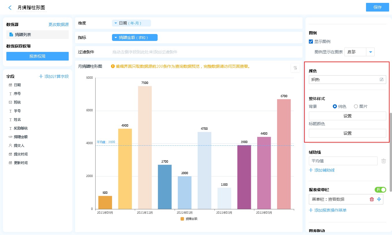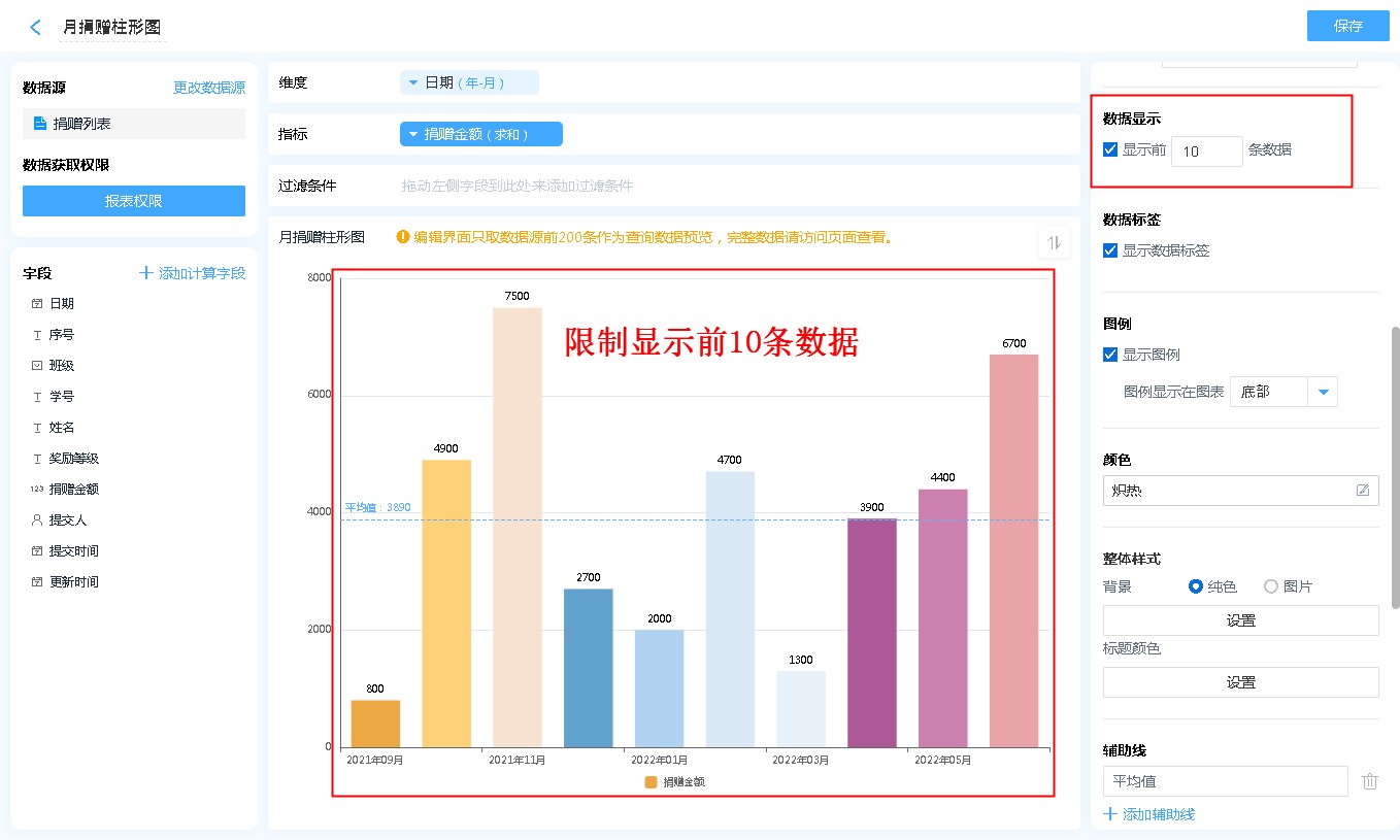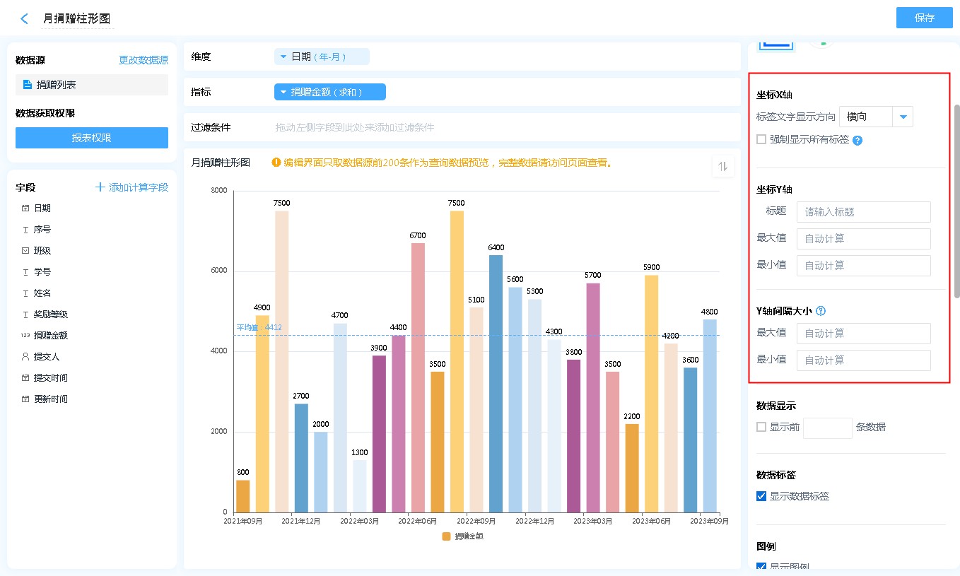 数据源就是指当前柱形图表的数据来源,可以是表单、数据视图。