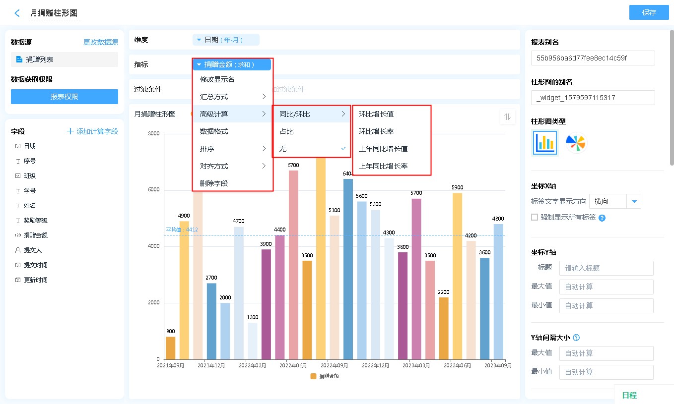 • 高级计算:高级计算可进行同环比、占比的计算,详见同环比和占比。