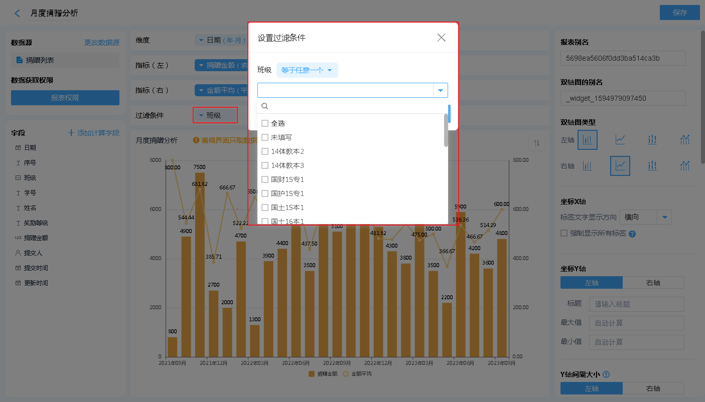 数据源就是指当前双轴图表的数据来源,可以是表单、数据视图。