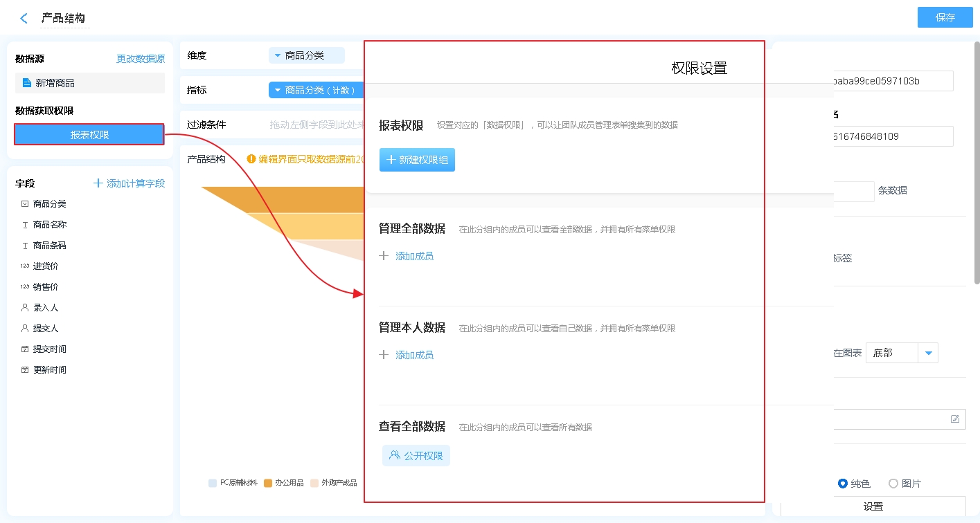 报表权限是指该报表的数据哪些人可以操作报表的数据,分别有什么操作权限。