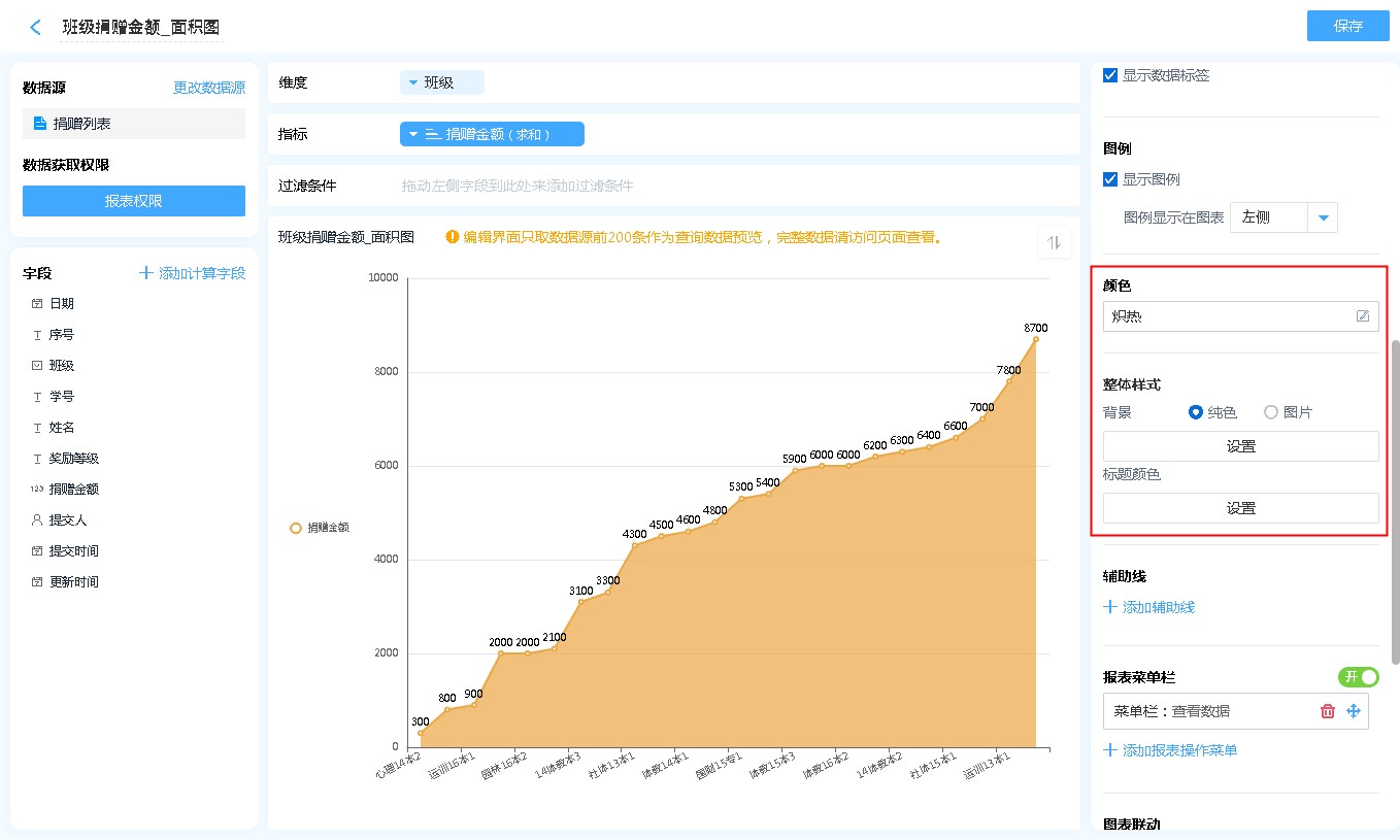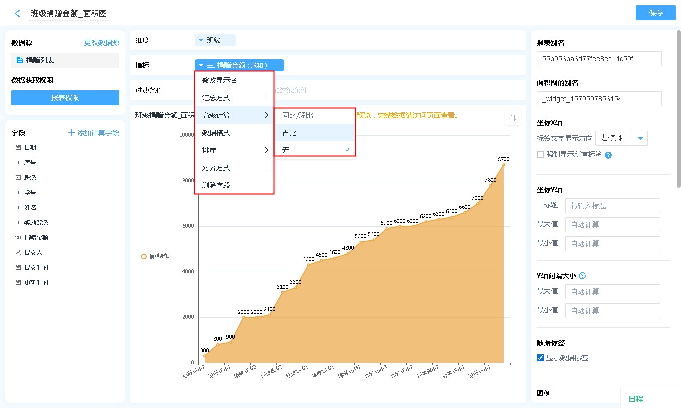 数据源就是指当前面积图表的数据来源,可以是表单、数据视图、聚合表。
