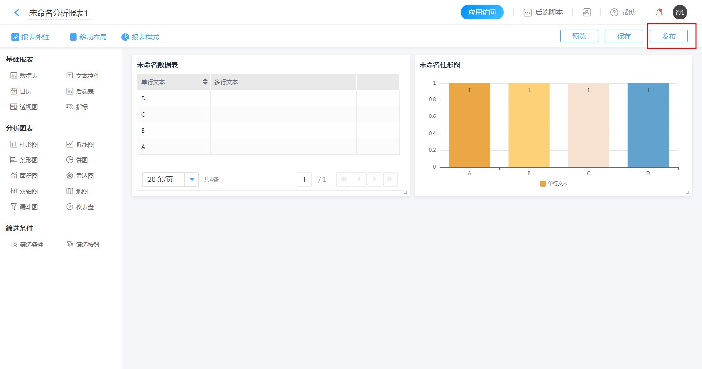 • 发布给谁,谁就有权限查看报表以及报表内的各个图表组件;没被发布的人就无法查看报表。