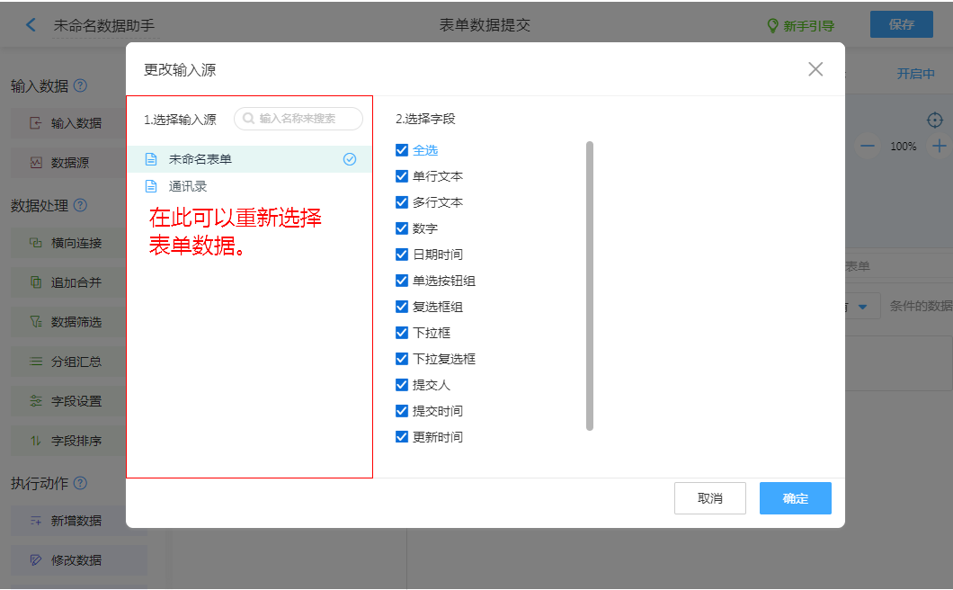 可以查看已添加的表单数据,方便后续节点配置预览效果。