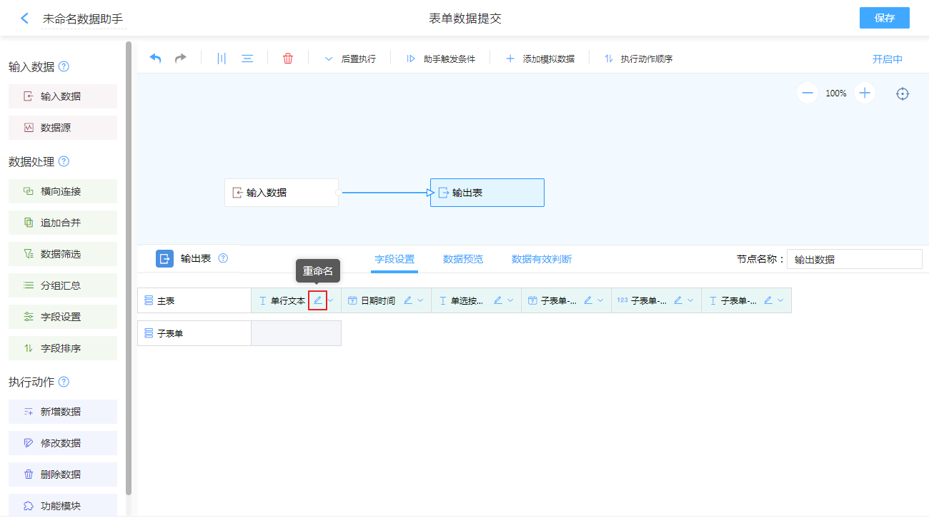 点击字段后的铅笔图标,可修改字段名称