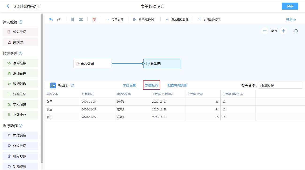 数据预览可查看输出的数据