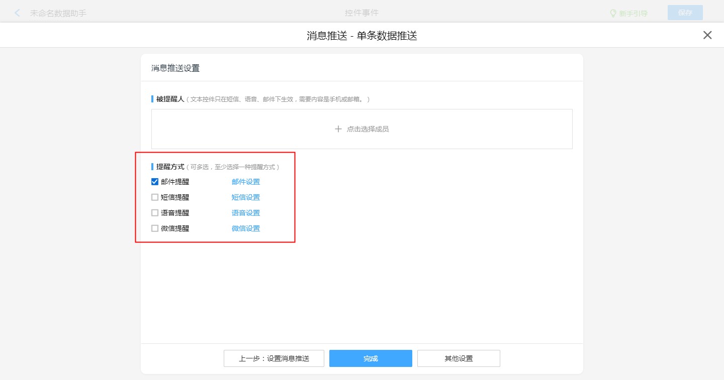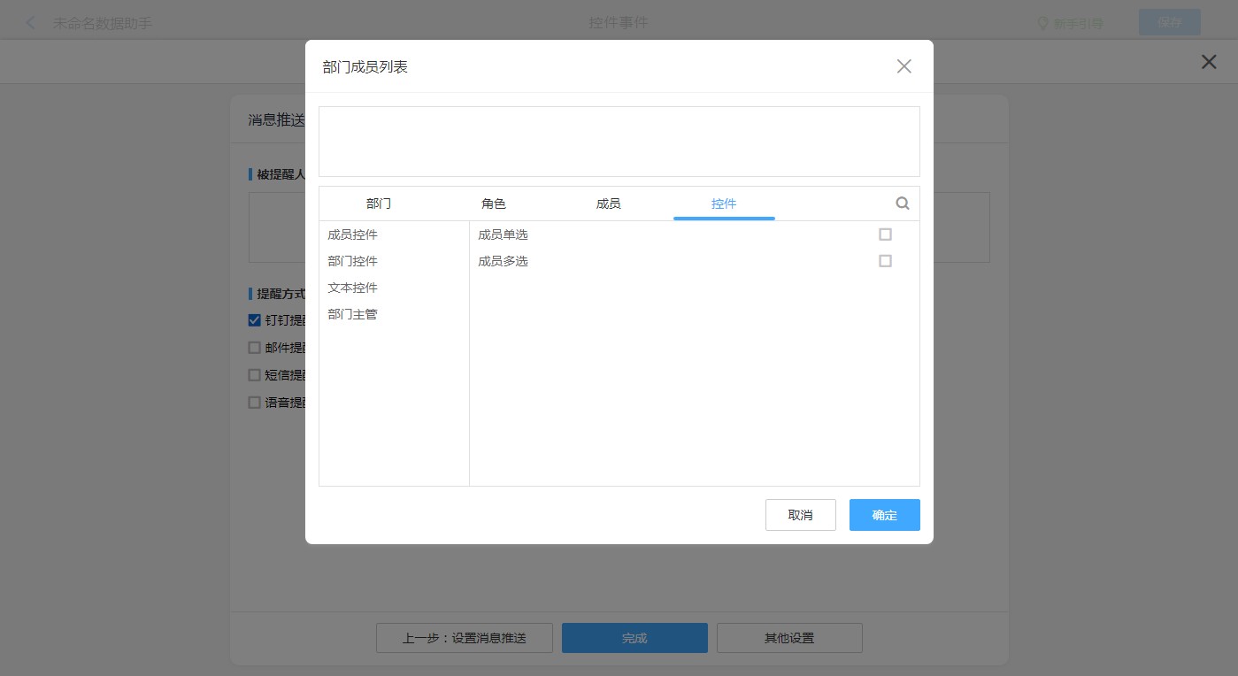 被提醒人 部门、角色、成员、控件