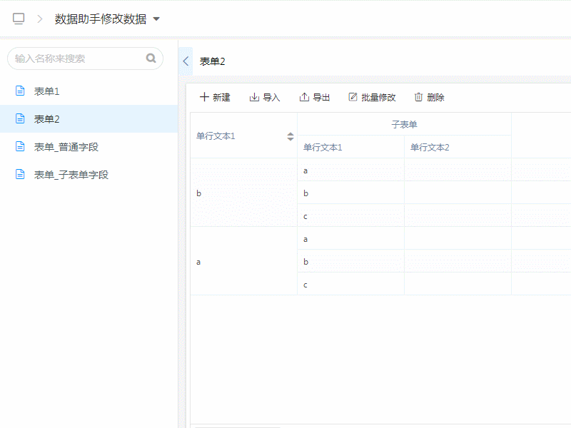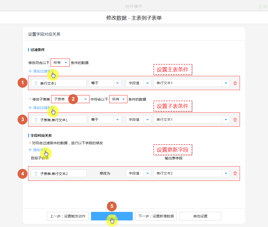 创建“修改数据”动作节点,将“输出表”的数据更新至其他表单。