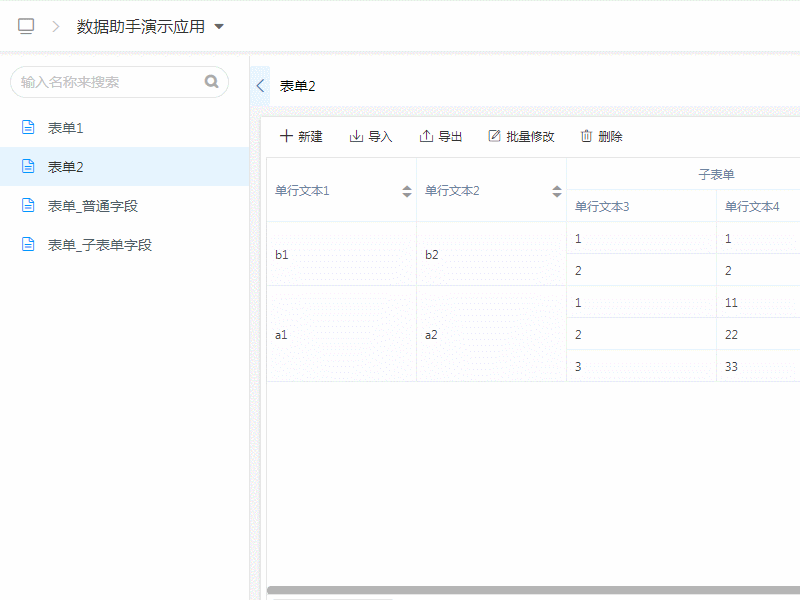 创建“新增数据”动作节点,将“输出表”的数据新增至其他表单。